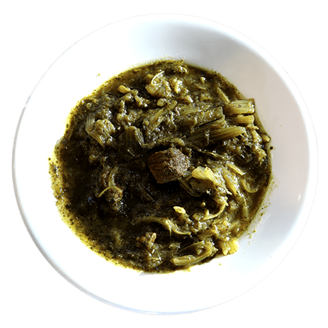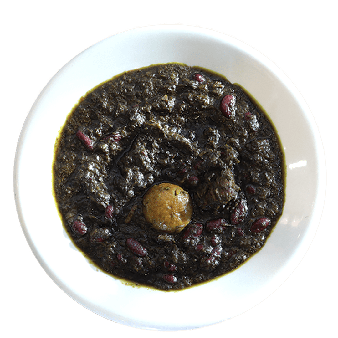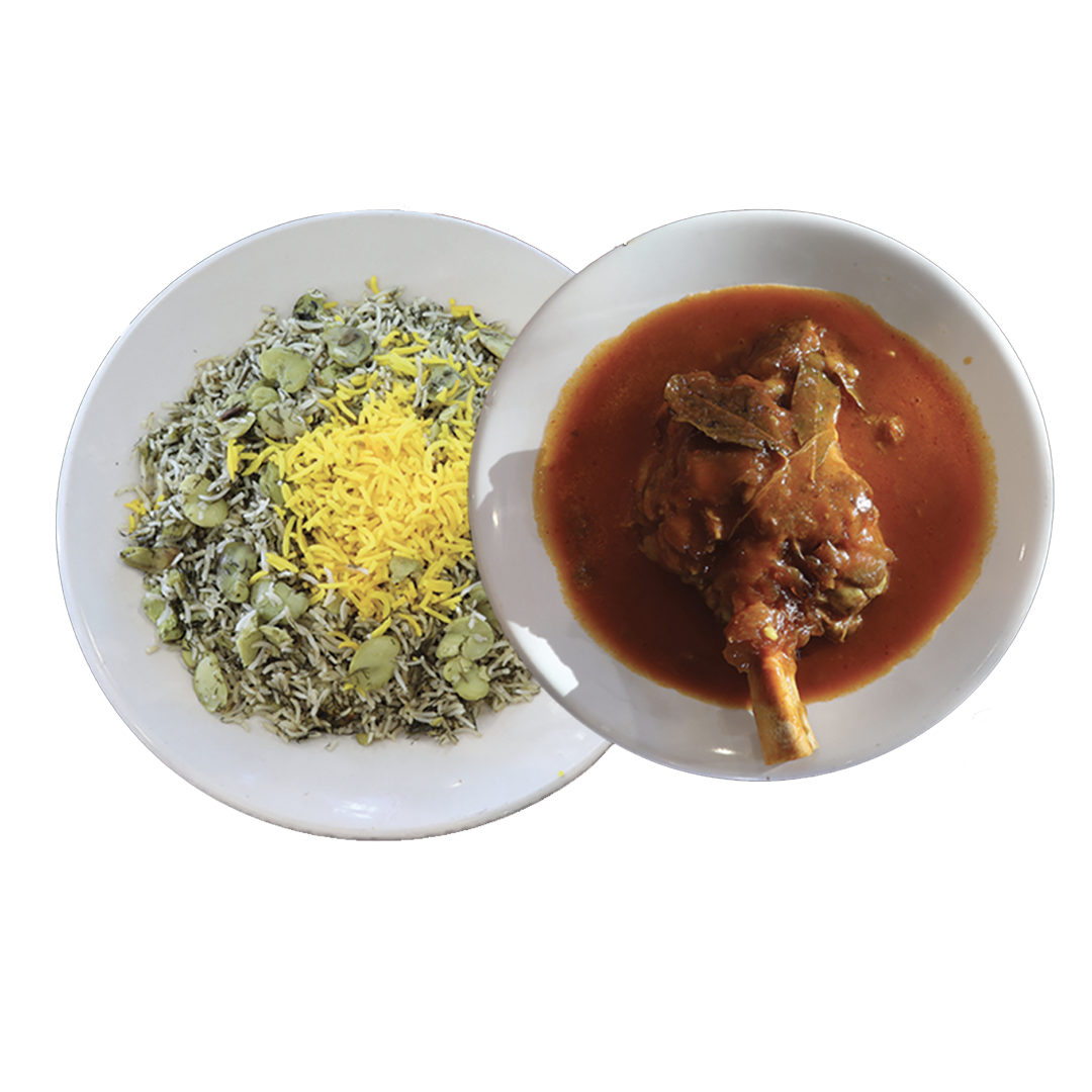 Parsley,leek, spinach, herbs sauteed with beef, kidney bean, served with basmati rice & tahdig